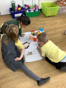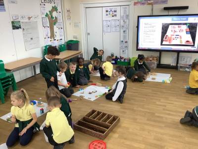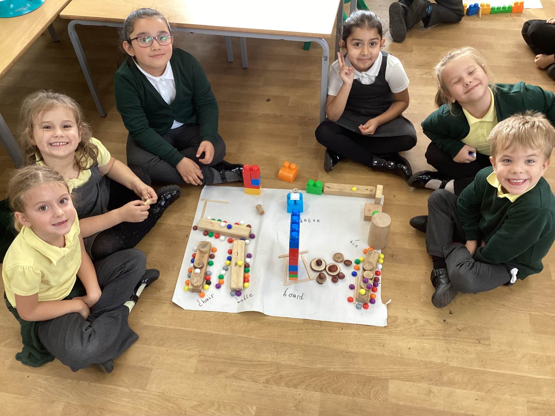 | In Geography we built different types of settlements. These children built a town. | In DT we made windmills and tested them outside in the wind. | In Maths we learnt the symbols less than, greater than and equal to. | We are doing the strong bear pose to make our bodies strong. |