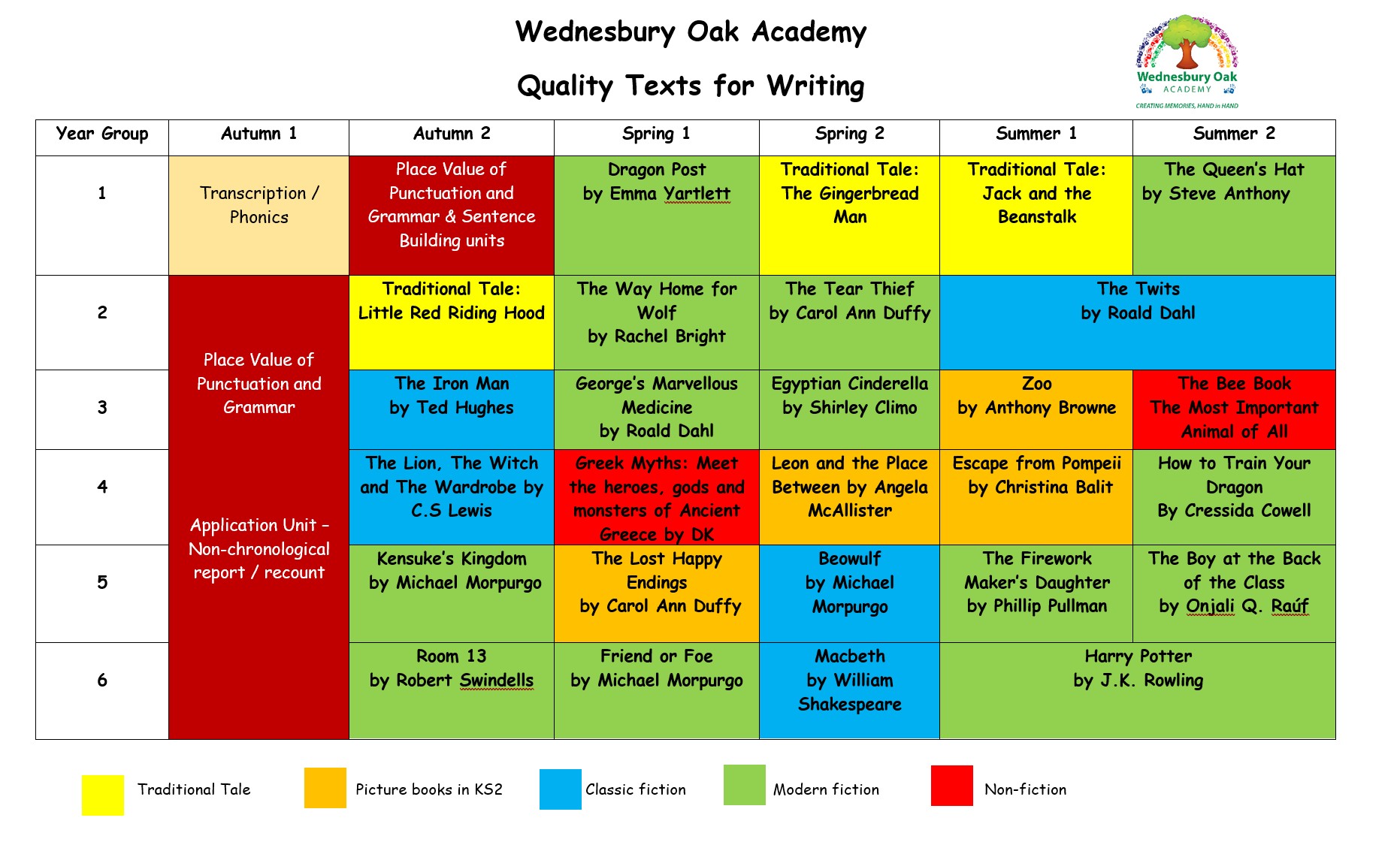 Overview of our Wednesbury Oak Writing Curriculum